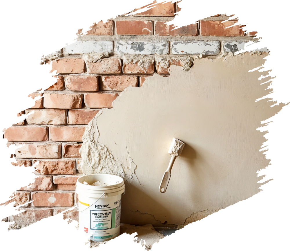 3. Mix salt retardant and waterproofing chemical into plaster. Re-plaster wall surface matching existing finish on wall.